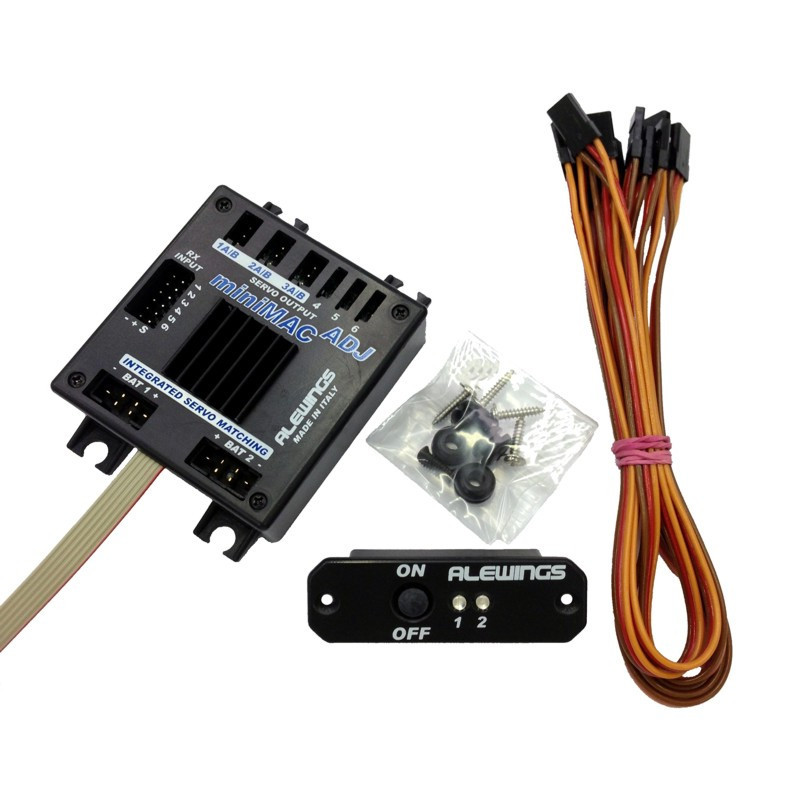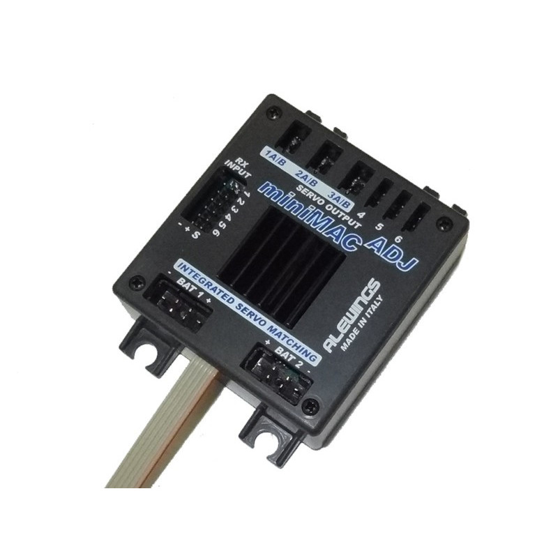 La MiniMAC ADJUST est une centrale de gestion des installations de radiocommande, elle permet de programmer les servos de premières 3 voies, elle accepte en entrée deux batteries et six voies de radiocommande.Caractéristiques :