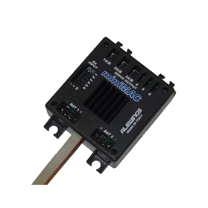 La MiniMAC est une centrale de gestion des installations de radiocommande; elle accepte en entrée deux batteries et six voies de radiocommande.Caractéristiques :