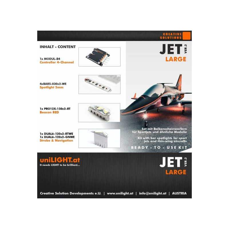 Kit d'éclairage professionnel pour jets sportifs et modèles à géométrie d'aile fine, tels que les turbopropulseurs.