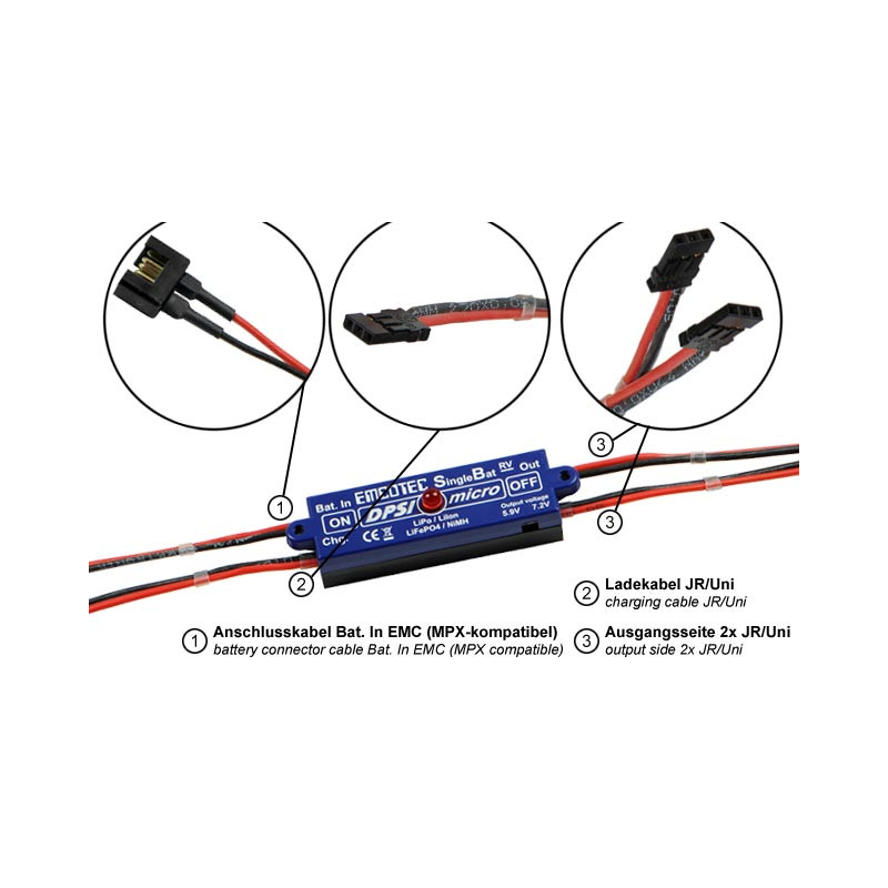 Magnetic switch DPSI Micro SingleBat 5.9V/7.2V MPX EMCOTEC