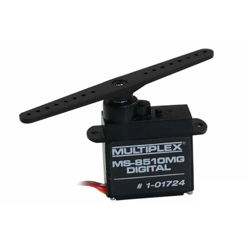 Servo MS-8510MG Multiplex, livré avec palonniers + visserie.Ce servomoteur ultra léger 5g (hors cable) sera idéal pour une utilisation sur un modèle indoor. Il est pignon métal! et il est livré avec un palonnier de servo long.