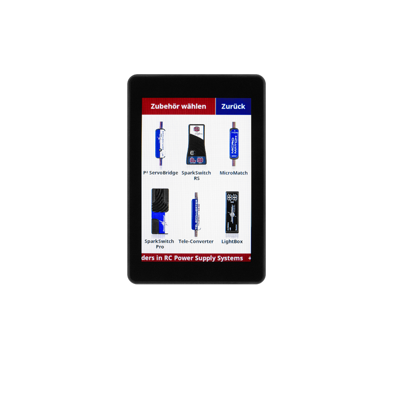 Le terminal mobile est une petite unité de contrôle pratique pour configurer et mettre à jour tous les produits PowerBox pouvant être mis à jour. Un puissant processeur 32 bits avec WiFi et Bluetooth, associé à un écran tactile lisible au soleil, offre une sensation de smartphone.