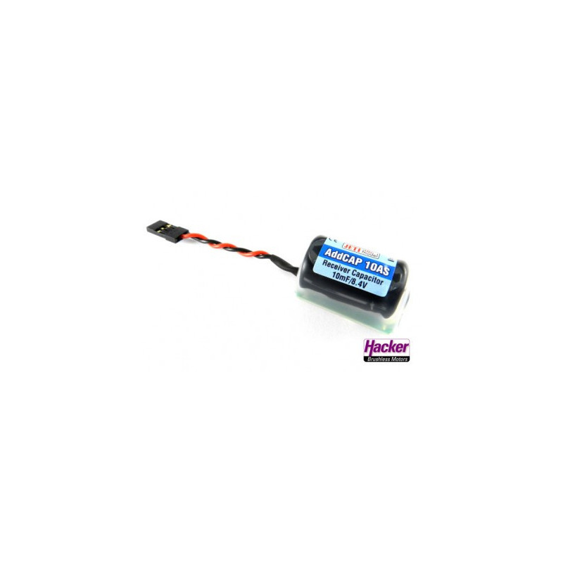 La conception AddCAP le rend approprié pour une utilisation dans des configurations où le récepteur est alimenté par un régulateur à découpage. La puissance de sortie est transférée à votre récepteur avec un connecteur de type servo JR. Il suffit de brancher le connecteur de type JR à n'importe quel canal de récepteur disponible.