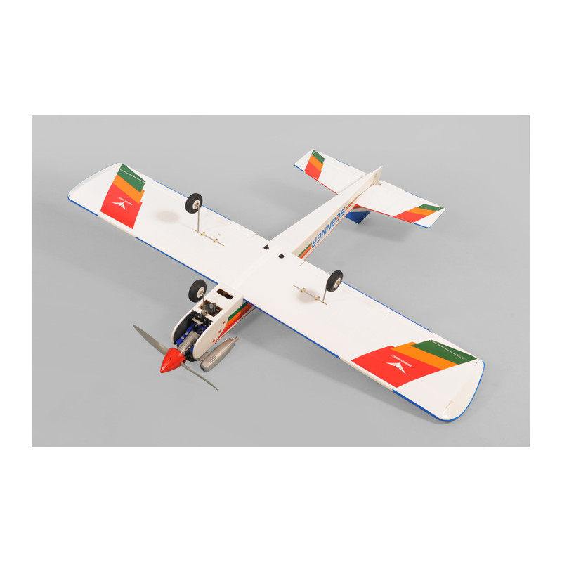 Tout le matériel est inclus (fil de servo, réservoir de carburant, roue / train d'atterrissage, etc.). Il vous suffit d'acheter séparément le moteur nitro ou électrique et le système radio, et vous pouvez piloter cet avion après 1 à 2 heures d'installation.