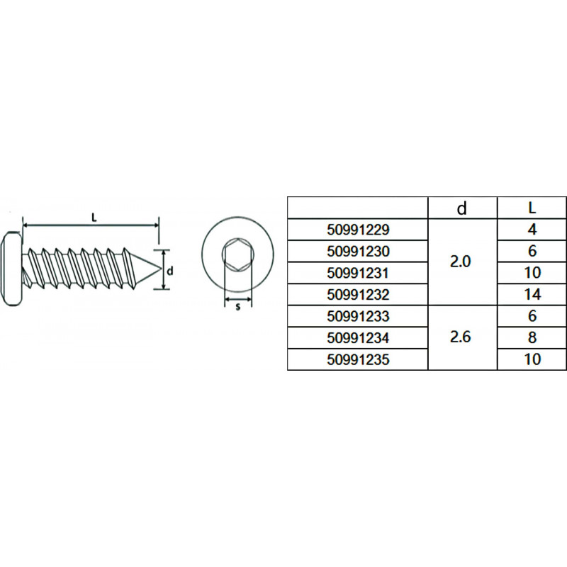Vis six pans creux, tête plate, 2,0 x 6 mm 30 Pces Robbe