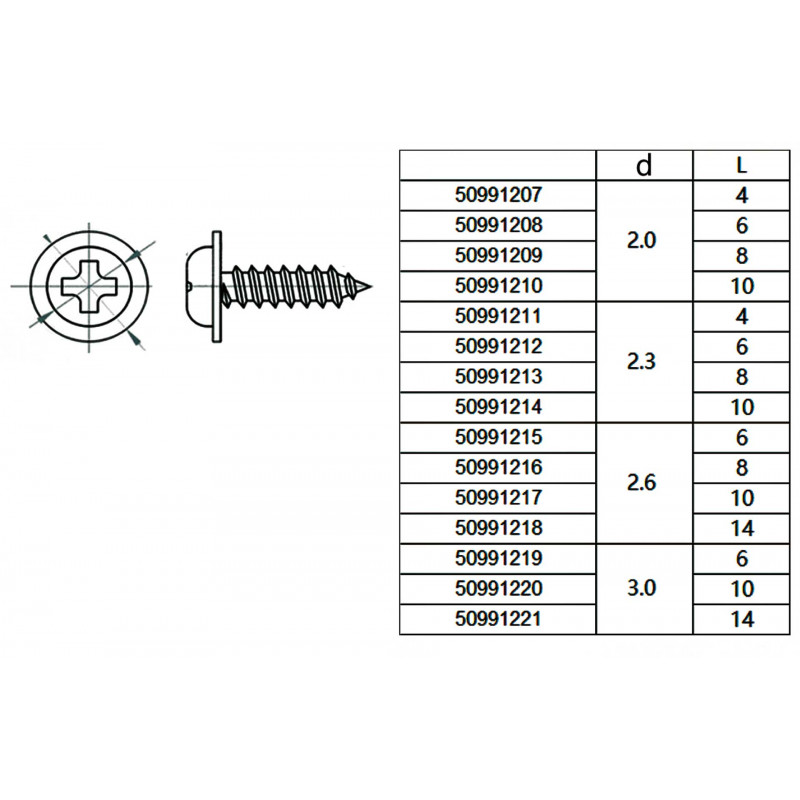 Vis tête cruciforme avec collerette, 2,0 x 6 mm 30 Pces Robbe