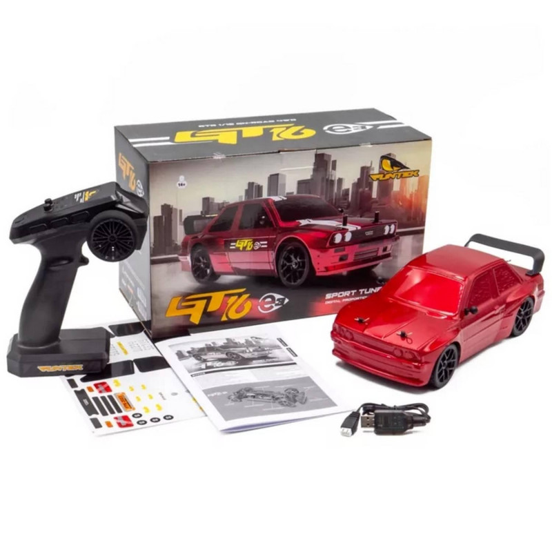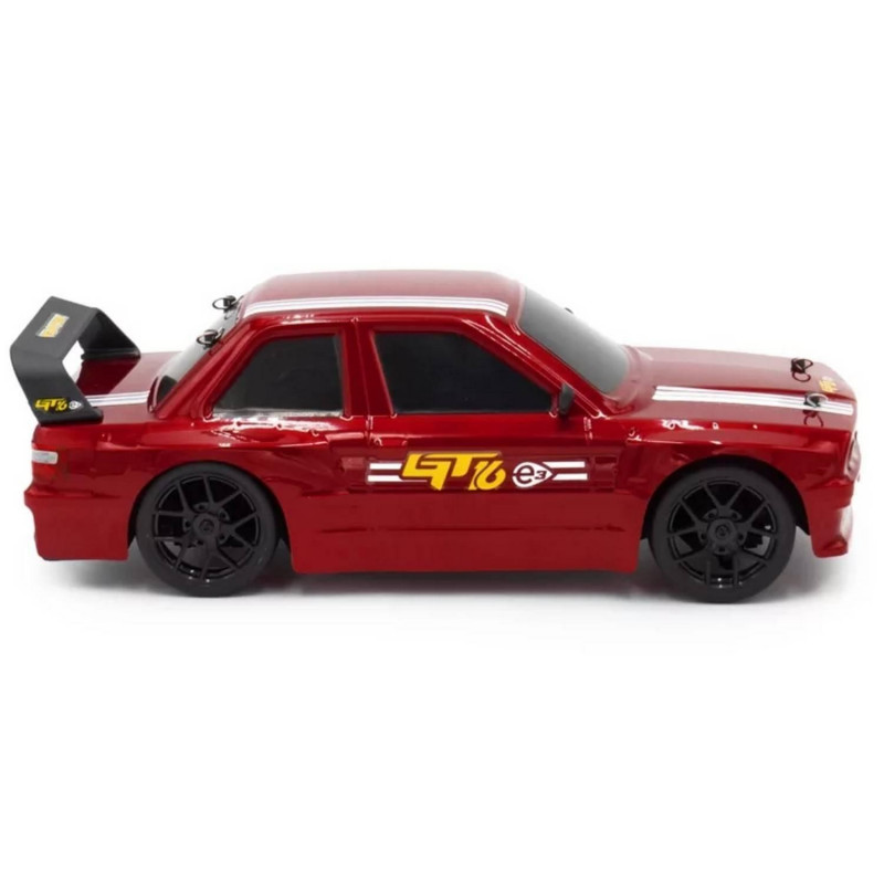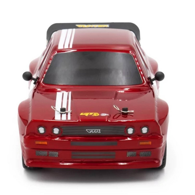 Pour cette version drift, Turbo Racing propose une micro voiture qui est équipée d'un gyro - indispensable pour une bonne glisse. Le gain du gyro se règle avec un bouton sur la radiocommande. Il faut le régler au point maxi juste avant que la voiture ne se mette à remuer de gauche à droite. Selon la glisse souhaitée (longue glisse ou glisse type donuts) on affine les réglages suivants : débattement de la direction et puissance moteur.