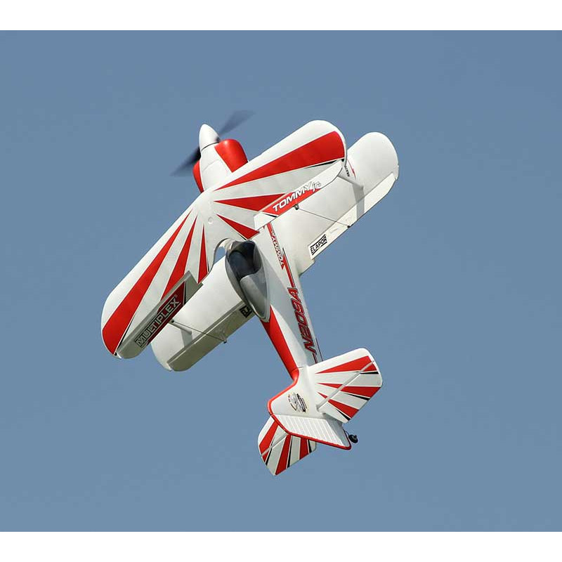 Multiplex Tommy Jr. est un avion biplan de loisir dont les lignes sont inspirées par le biplan américain de construction amateur dessiné par Meyer Aircraft Company.