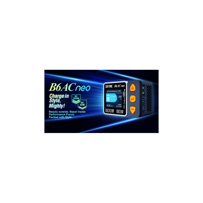 Le B6neo de SkyRC apporte un plaisir de chargement avec son élégant design bicolore en gris. Que ce soit sur la piste ou dans les loisirs, il se démarque simplement de la foule avec son schéma de couleurs calmes et montre la personnalité unique de son propriétaire.