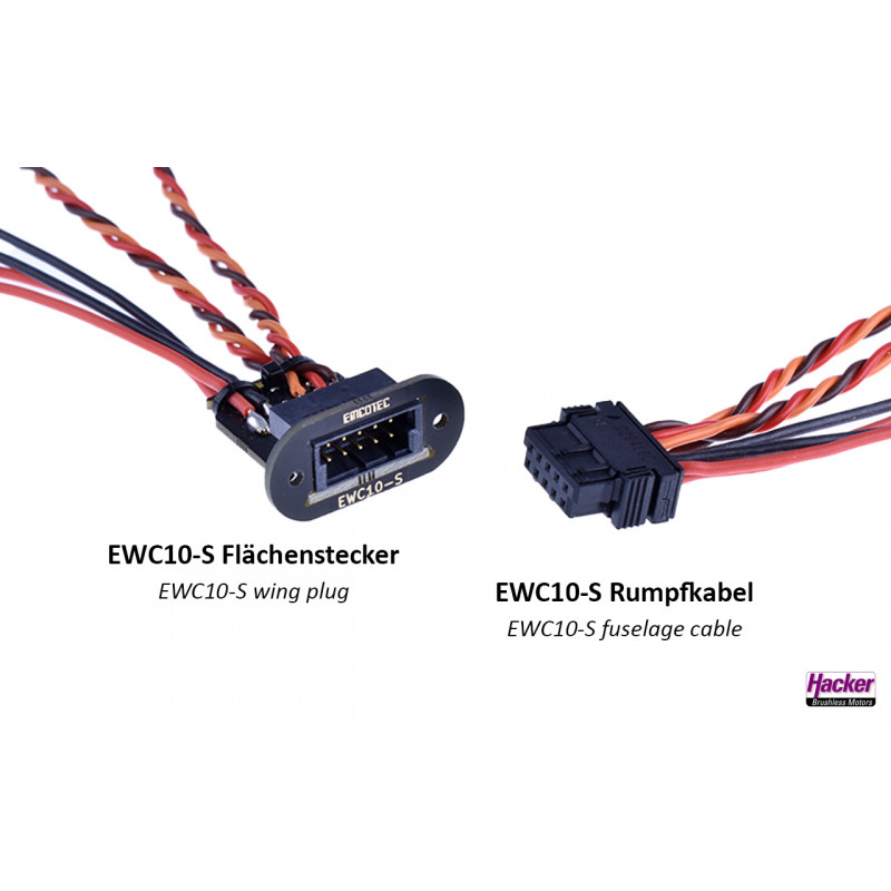 Connecteur d'aile EWC10-S+câble de fuselage EWC10-S 70cm Hacker