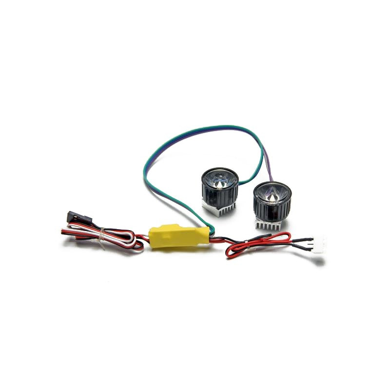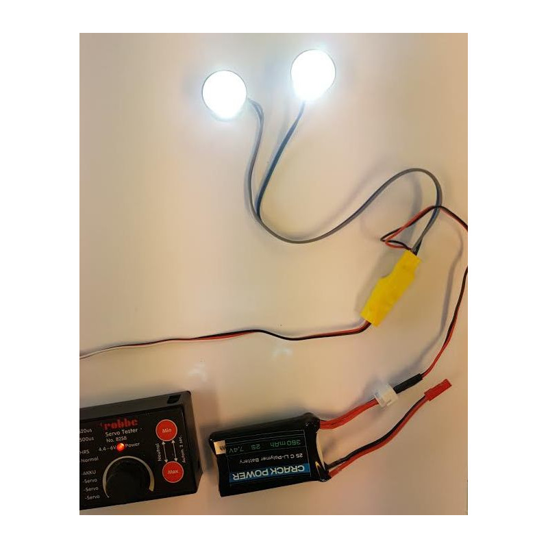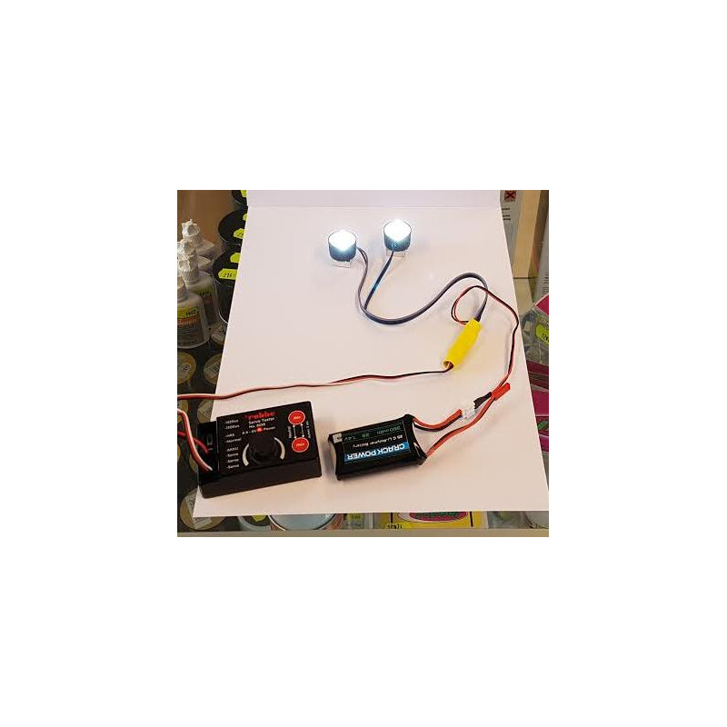Deux phare de 18mm, alimenté directement via la prise d'équilibrage d'un lipo 2S ( format XH).
