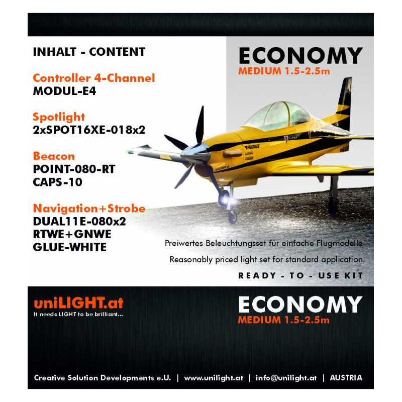 Kit abordable de la série ECONOMY pour modèles de taille moyenne d'une envergure d'environ 1,5 à 2,5 mètres.