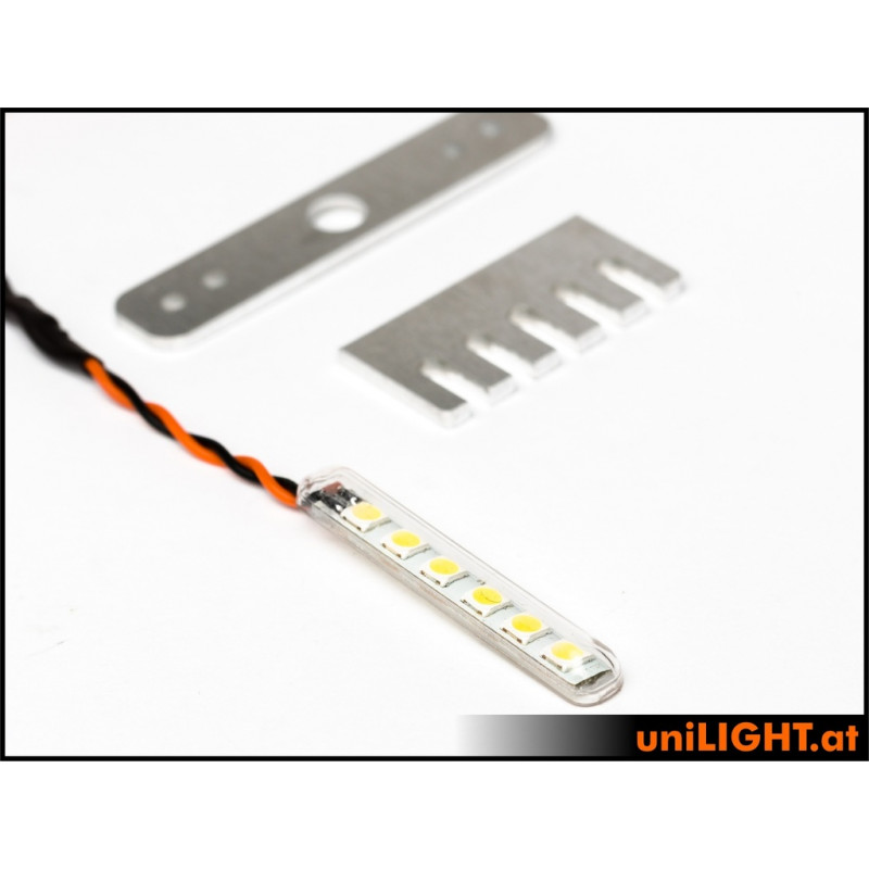 Kit d'éclairage professionnel avec les meilleurs feux stroboscopiques pour votre planeur. Le kit comprend un contrôleur 1 canal, deux barres lumineuses blanches de 5 mm et deux feux stroboscopiques 8 V Pro de 12 mm. Le système est extensible avec des éclairages supplémentaires.