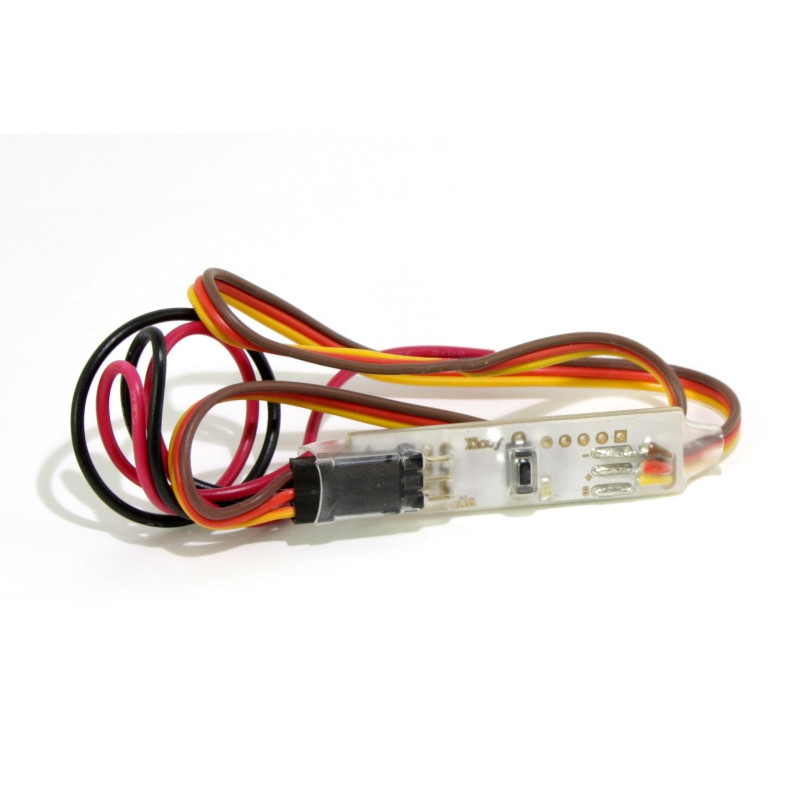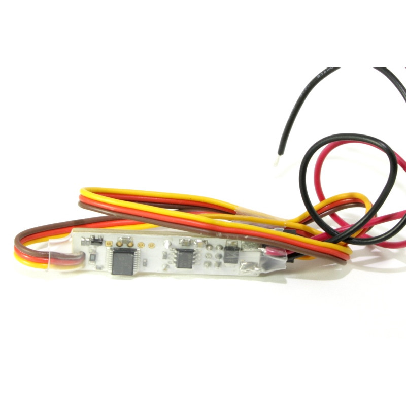 -Connectez les fils rouge (+) et noir à la batterie. Tension de batterie recommandée 7,2V (2s Lipo, 5 NiCd-NiMh). A123 2s et 3s autorisés. 3S Lipo non recommandé sur les freins 6V.