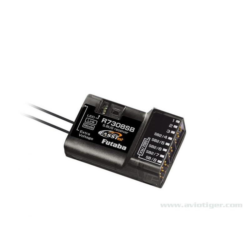 Récepteur R7308SB– FASSTest Bi-Directionel pour avion.Elle se différencie du récepteur R7208SB par l'utilisation d'une antenne "sleeve" (antenne à jupe).