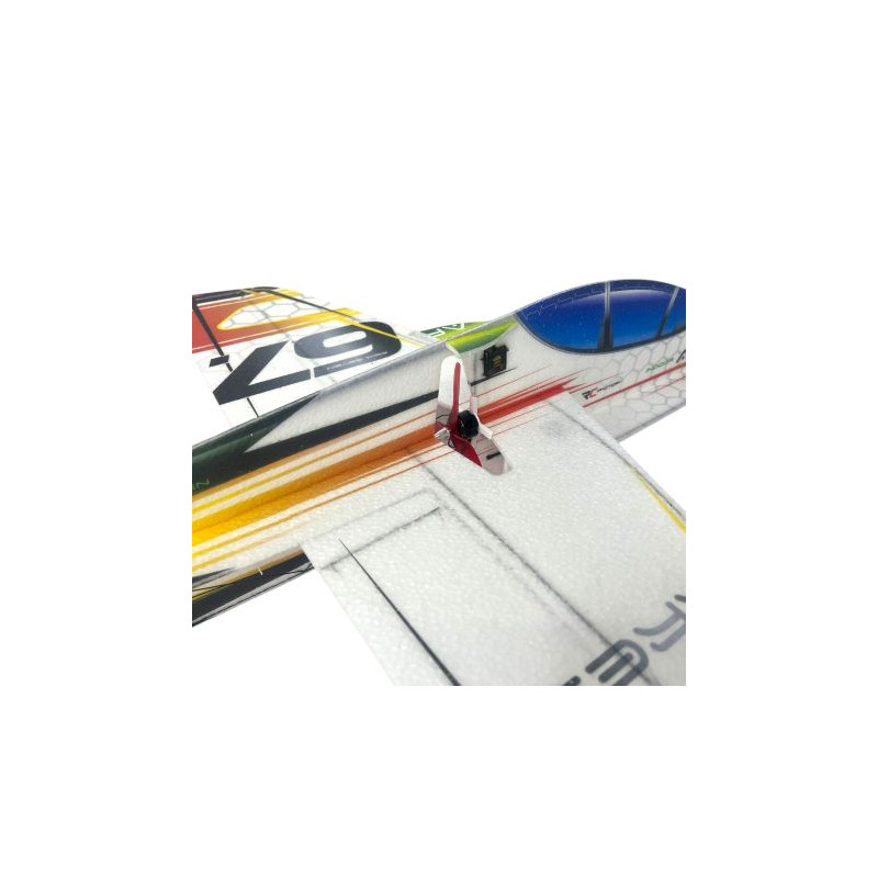Ce modèle est extrêmement maniable, tout en conservant une grande stabilité et une excellente rigidité en vol. Sa structure encaisse sans problème les atterrissages un peu brusques. Le moteur, positionné au centre, réduit considérablement le risque d'endommagement de l'hélice en cas de petits chocs.