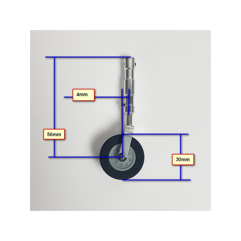 1 Jambe pour train avant: hauteur totale avec la roue 56mm, pour CAP 3mm avec roue Ø 30mm