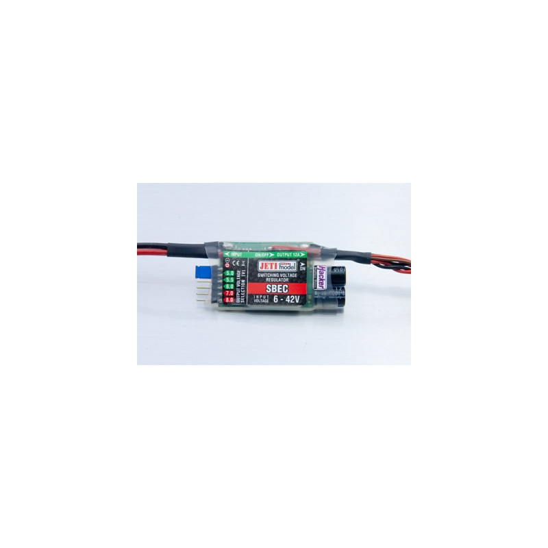 Le réglage de la tension de sortie entre 5 et 8V est fait par un cavalier. Ceci implique que le SBEC est également adapté à l'usage des nouveaux servos haute tension.