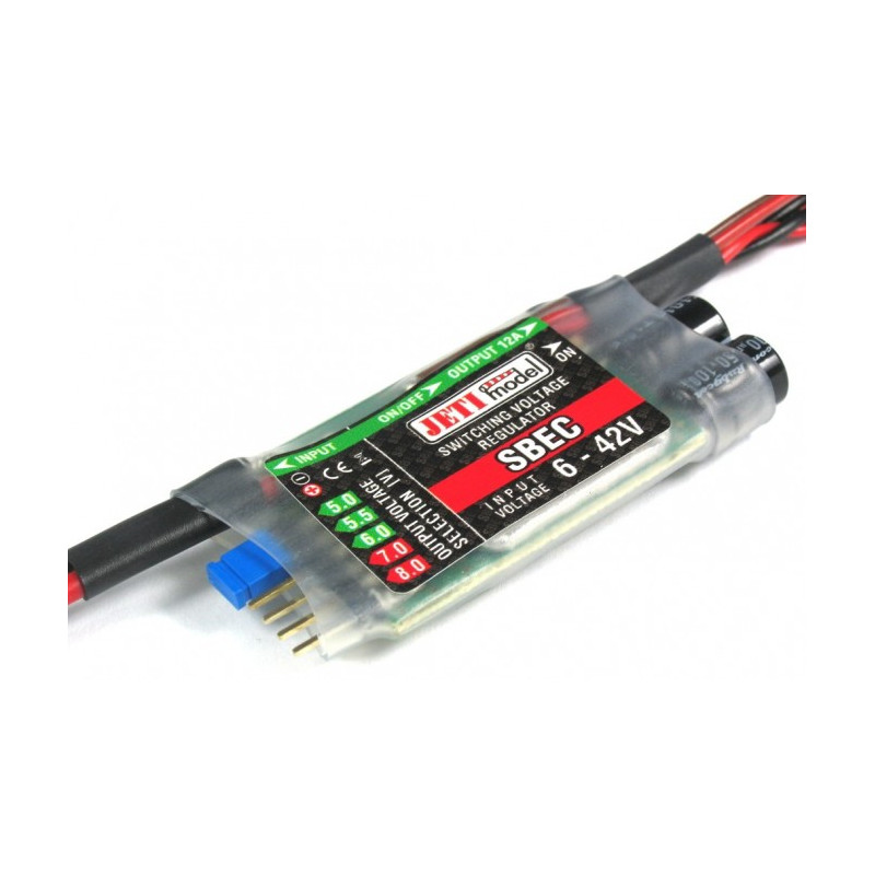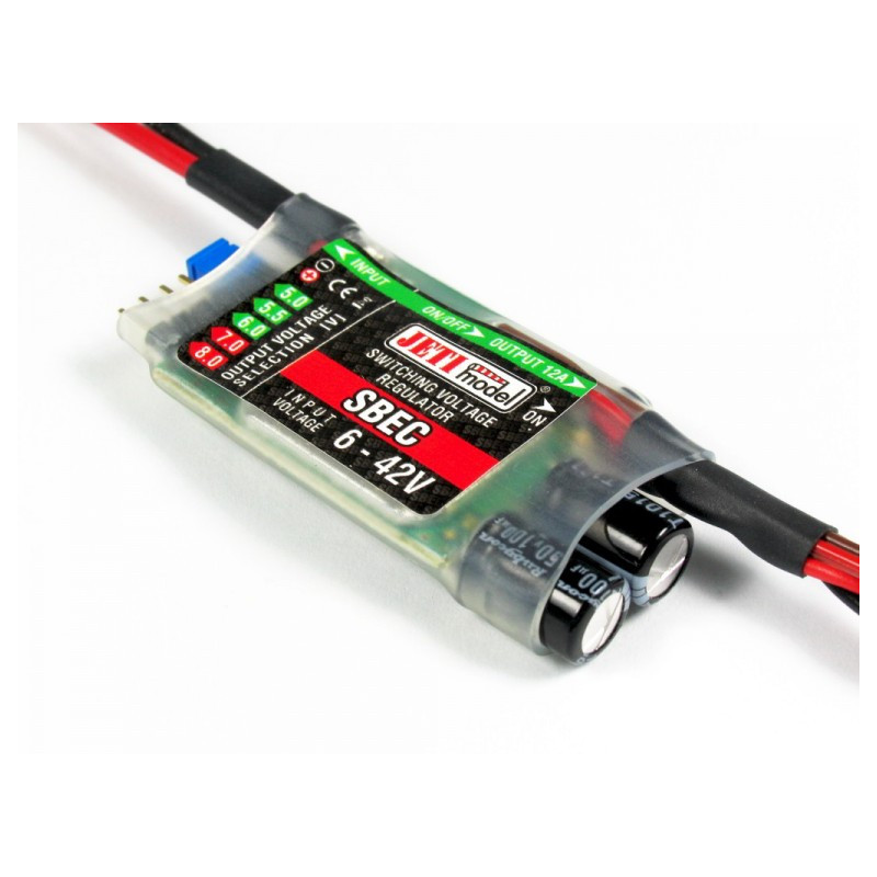 Le SBEC peut supporter un courant maximum de 12A il est donc parfaitement approprié pour les modèles de tailles moyennes jusqu’aux plus gros sous reserve de ne pas dépasser la consonmation maxi.