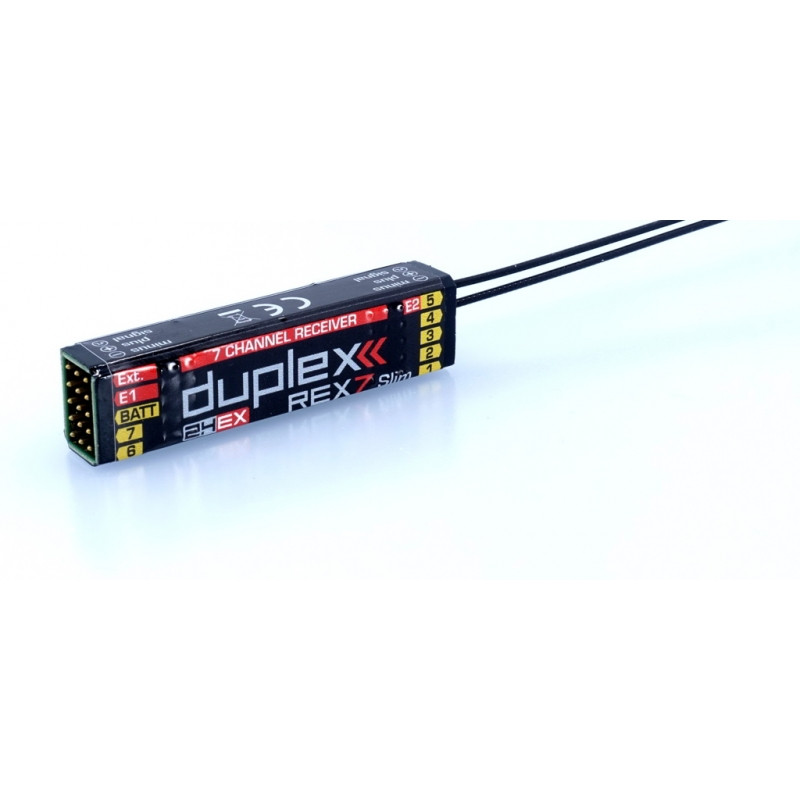 Cette catégorie de récepteur slim comporte 7 sorties servos. Il est spécialement conçu pour les modèles comportant un fuselage étroits. Il est idéal pour les F3J/ F5J etc..