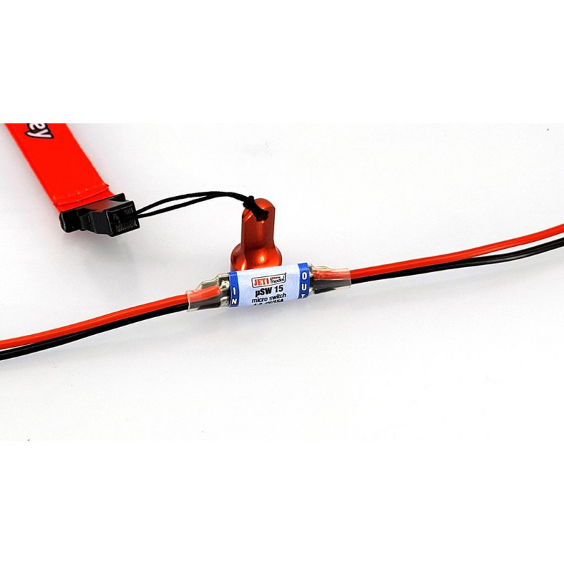Interrupteur électronique 15A pour allumer et éteindre l'alimentation des modèles RC (récepteur, circuit d'éclairage, etc.). Ses dimensions compactes et sa capacité de charge élevée conviennent à toutes les applications où l'encombrement et le poids sont importants (ex. F3J, F5J, F3K, etc.)Caractéristiques techiques :