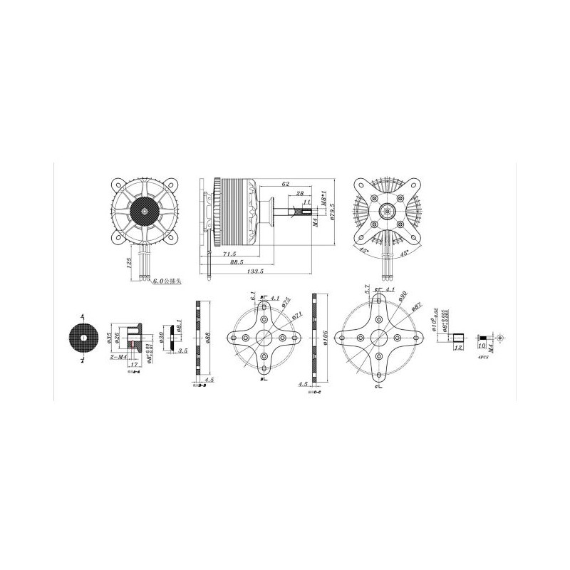 Installation du moteur : Le KAVAN 8055-190 est conçu pour un montage radial. Utilisez quatre vis en acier M4 ; la cloison pare-feu doit être en contreplaqué de 8 à 10 mm.