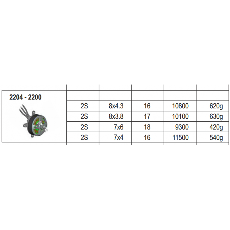 Vitesse à vide par volt : 2200 tr/min (KV)