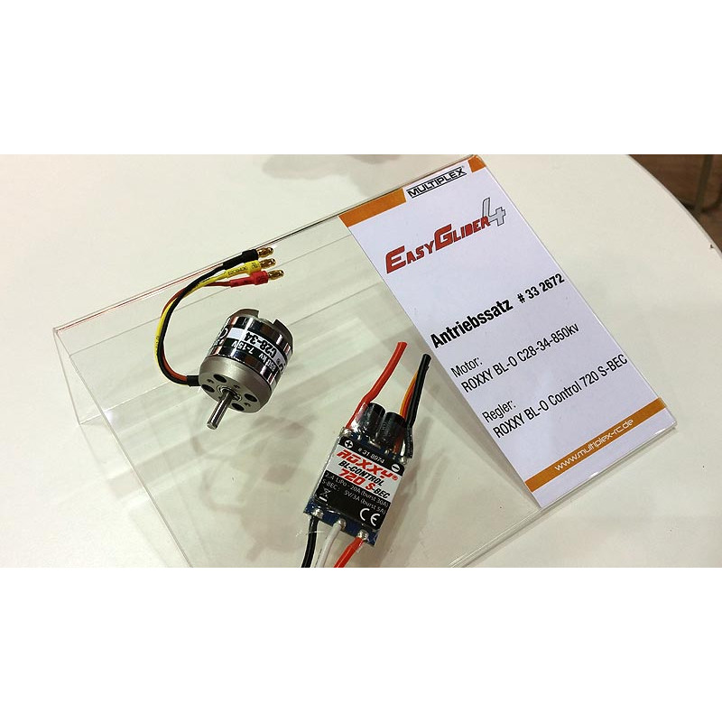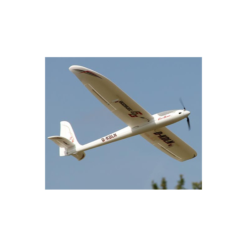 Modèle en ELAPOR entièrement assemblé avec moteur ROXXY C28-34-850kv, variateur ROXXY BL-Control 720 S-BEC, hélice à pales repliables 9x6", 2 servos Tiny-S et 2 servos Nano-S, le tout monté, décoration posée et notice de montage détaillée.