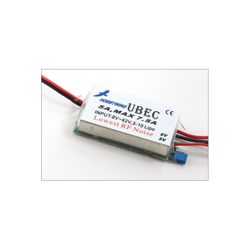 Le BEC 5A numérique est conçu pour fonctionner à des tensions d'entrée élevées allant jusqu'à 42V conçu (HV = High Voltage). Le régulateur de tension fournit l'occasion au système de réception dans le modèle afin de fournir la batterie de puissance.